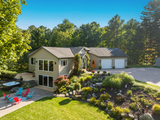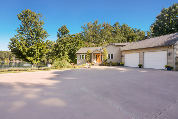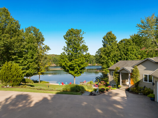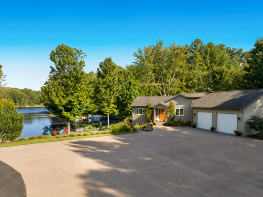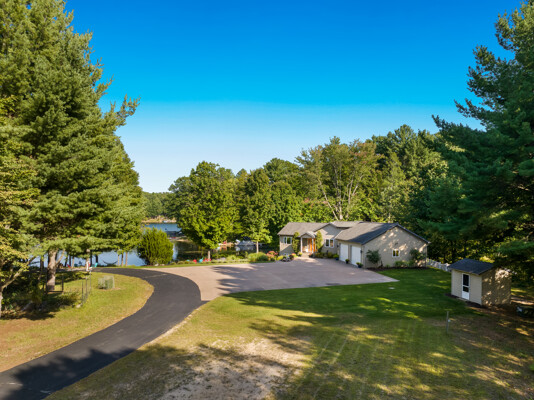 Nestled on 4.96 acres of pristine grounds, this private lakeside enclave offers unmatched serenity and sweeping water views from every room. The property boasts 267 feet of level, sandy frontage and sits at the end of a quiet private drive, ensuring complete seclusion. A rare opportunity, the residence includes a potential parcel split for future resale and is offered essentially fully furnished, creating a seamless turnkey buying experience.