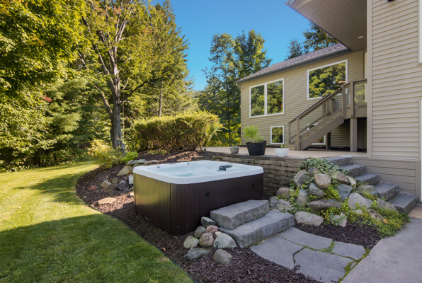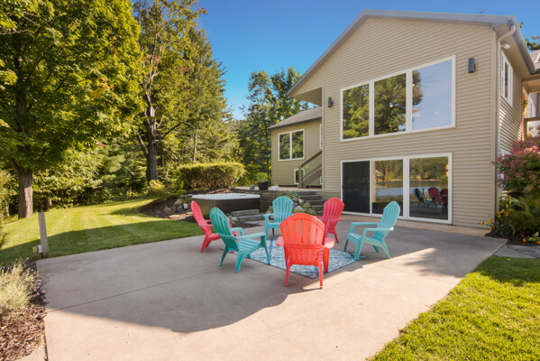 Outdoors, the property has been carefully designed for lakefront living at its finest. Two expansive patios set the stage for al fresco dining and entertaining, while a six-person spa, lakeside fire pit, and lush irrigated lawn create an idyllic environment for relaxation. The grounds include a heated two-car garage, a 54’ x 70’ tinted concrete parking pad, a garden shed, two RV hookups with 30 amp service and water as well as space for additional garage space.